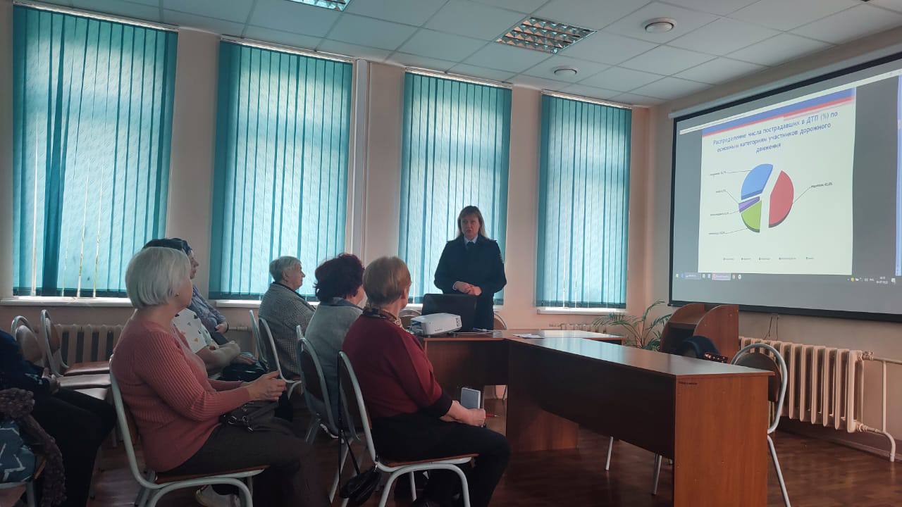 Атоинспекторы не оставляют без внимания одну из самых уязвимых участников дорожного движения – пожилых пешеходов. Данная категория участников дорожного движения наиболее других подвергнуты риску попасть в опасные ситуации на проезжей части. Снижение слуха и зрения, а также способности ориентироваться в пространстве и реакции на сигнал опасности, зачастую приводят к фактам дорожно-транспортных происшествий. Часто пожилые люди переходят дорогу в неположенных местах, там, где им удобно, и как показывает практика, не всегда безопасно. В ходе разговора основное внимание было уделено правилам безопасного перехода проезжей части, дорожным ловушкам, с которыми сталкивается пешеход в условиях современного города с интенсивным движением транспорта, необходимости использования световозвращающих элементов в сумеречное время суток и в условиях недостаточной видимости.