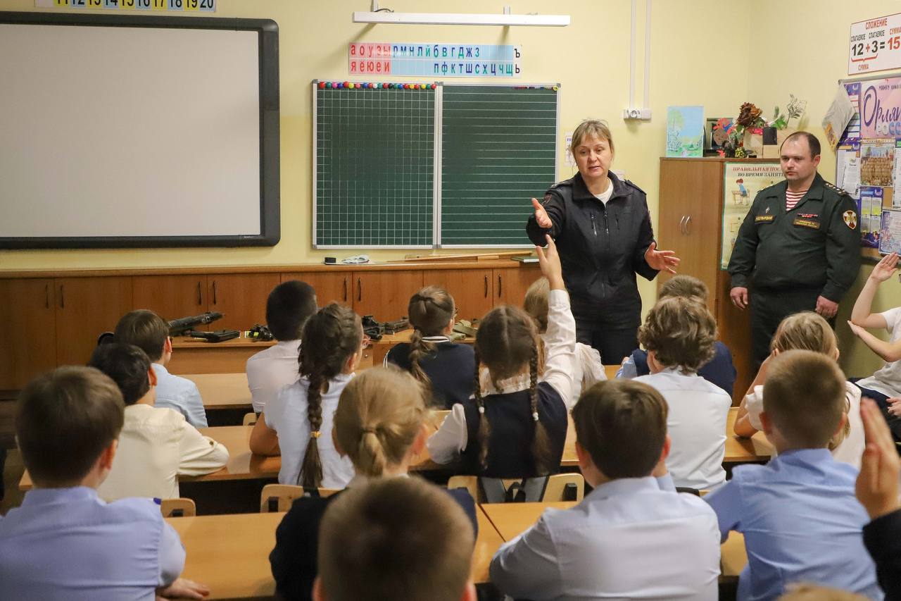 Сотрудники Госавтоинспекции совместно с сотрудниками Росгвардии провели «урок мужества» для учащихся школы №22 города Рязани