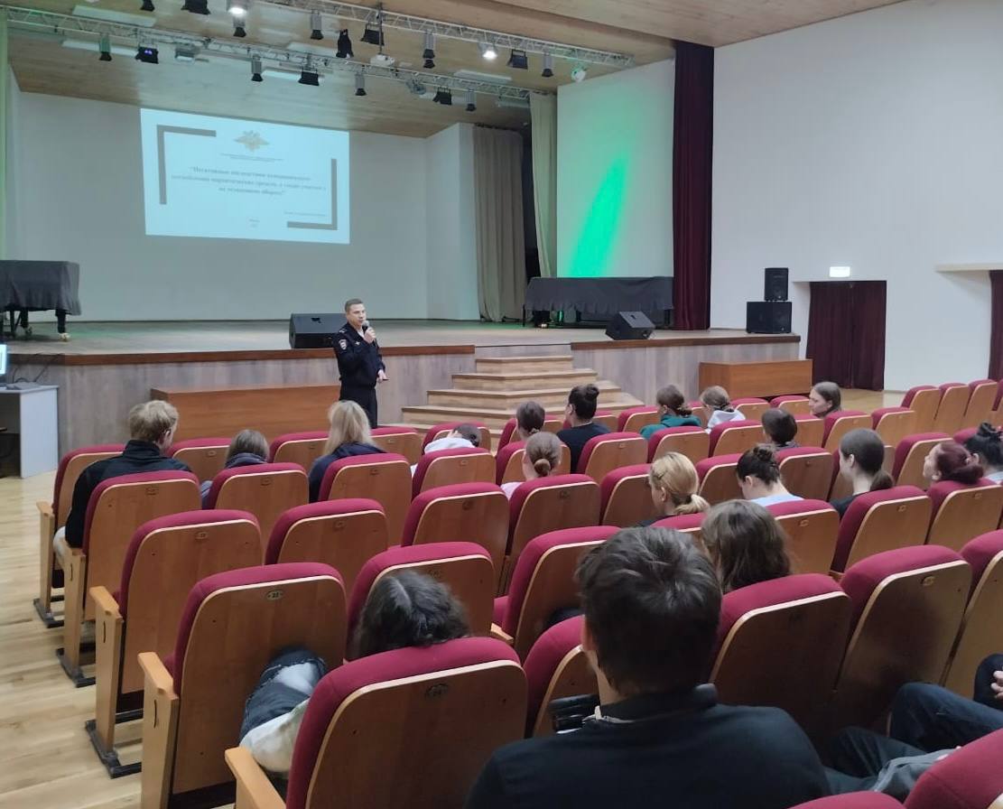 В рамках акции «Сообщи, где торгуют смертью» полицейский рассказал студентам Рязанского музыкального колледжа имени Пироговых о негативных последствиях употребления наркотиков и ответственности за наркопреступления