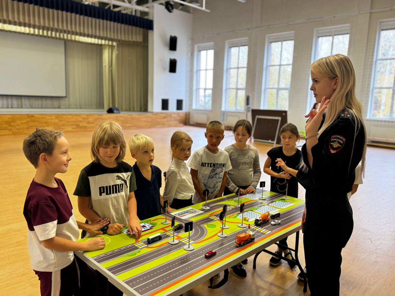 Ребята разобрали скрытые опасности на дороге — так называемые «дорожные ловушки» — и предлагали, как правильно в них действовать. Также школьники учились оценивать скорость и расстояние до приближающихся машин.Им еще раз напомнили, как правильно и безопасно переходить дорогу.