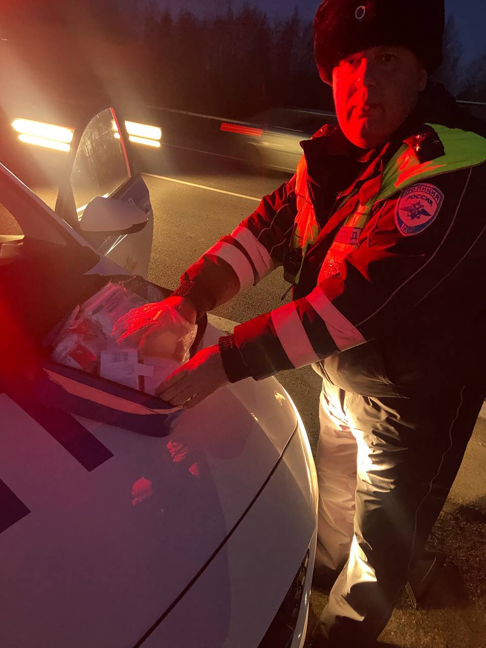 Пассажирка легкового автомобиля получила травмы, ей требовалась неотложная медицинская помощь. Госавтоинспекторы воспользовались укладкой для оказания первой помощи пострадавшим в ДТП, поставленной в рамках федерального проекта «Безопасность дорожного движения» и находящейся в каждом патрульном автомобиле Госавтоинспекции.
