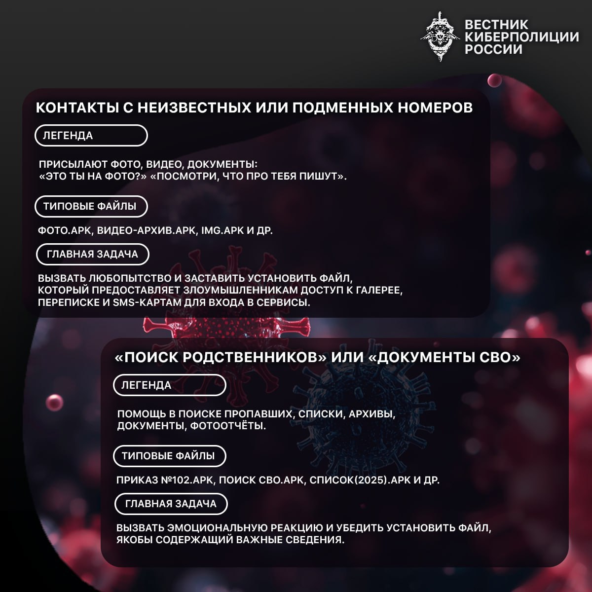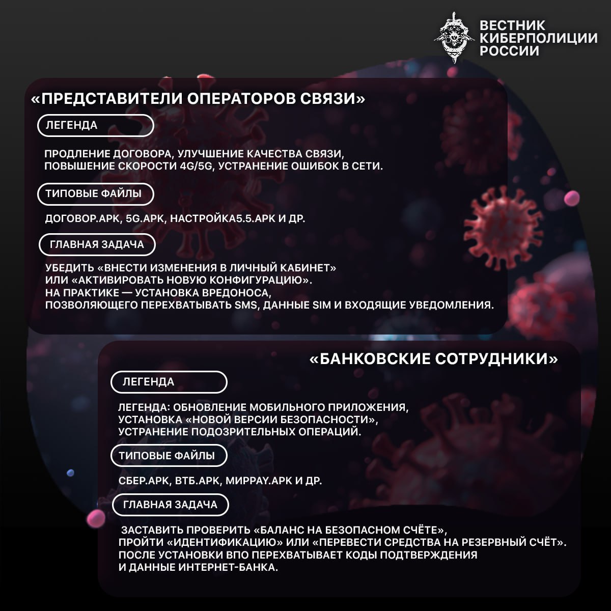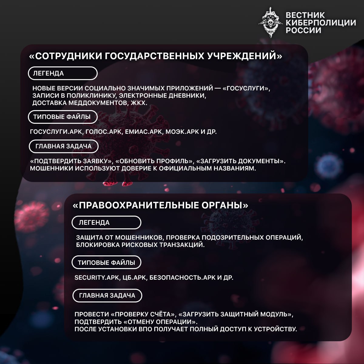 Злоумышленники используют десятки сценариев, маскируя вредоносные APK-файлы под обновления, служебные приложения, документы и сервисные инструменты. Главная цель — убедить гражданина самостоятельно установить файл, открывающий доступ к телефону, переписке, SMS-кодам и банковским операциям.