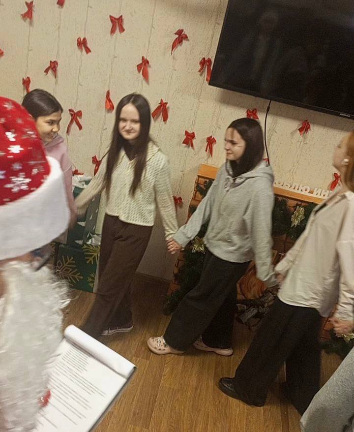 Ребята помогали Дедушке и Снегурочке отгадывать загадки Зимы. Воспитанники интерната удивлялись, смеялись и водили хоровод с главными персонажами Нового года.