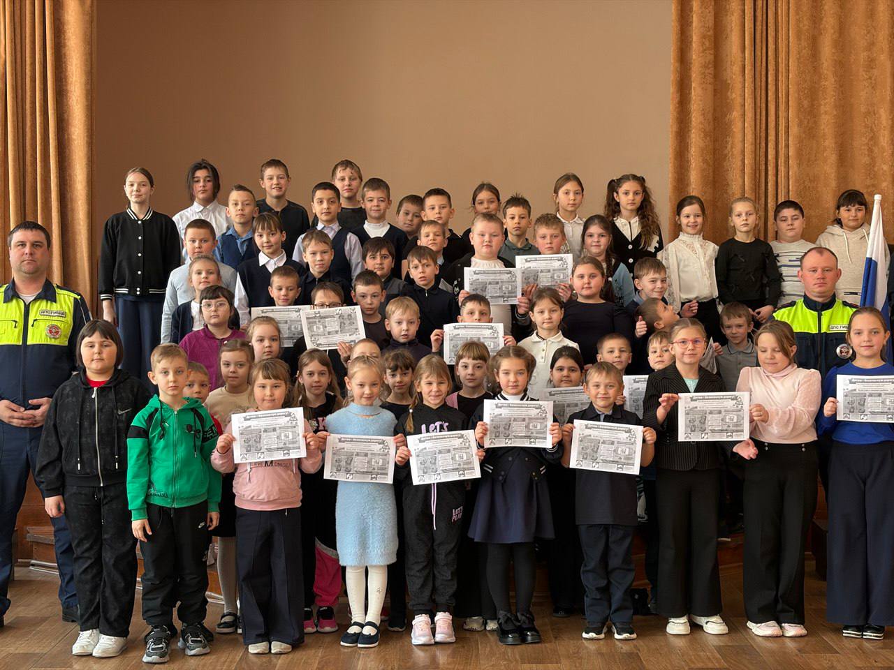 В ходе встречи сотрудники Госавтоинспекции провели познавательную беседу по основам дорожной безопасности, рассказали, основные правила дорожного движения для пешеходов, о том какие опасности могут подстерегать детей и подростков на дорогах и как их избежать. Кроме того, сотрудники полиции напомнили детям о необходимости использования световозвращающих элементов на одежде в темное время суток.