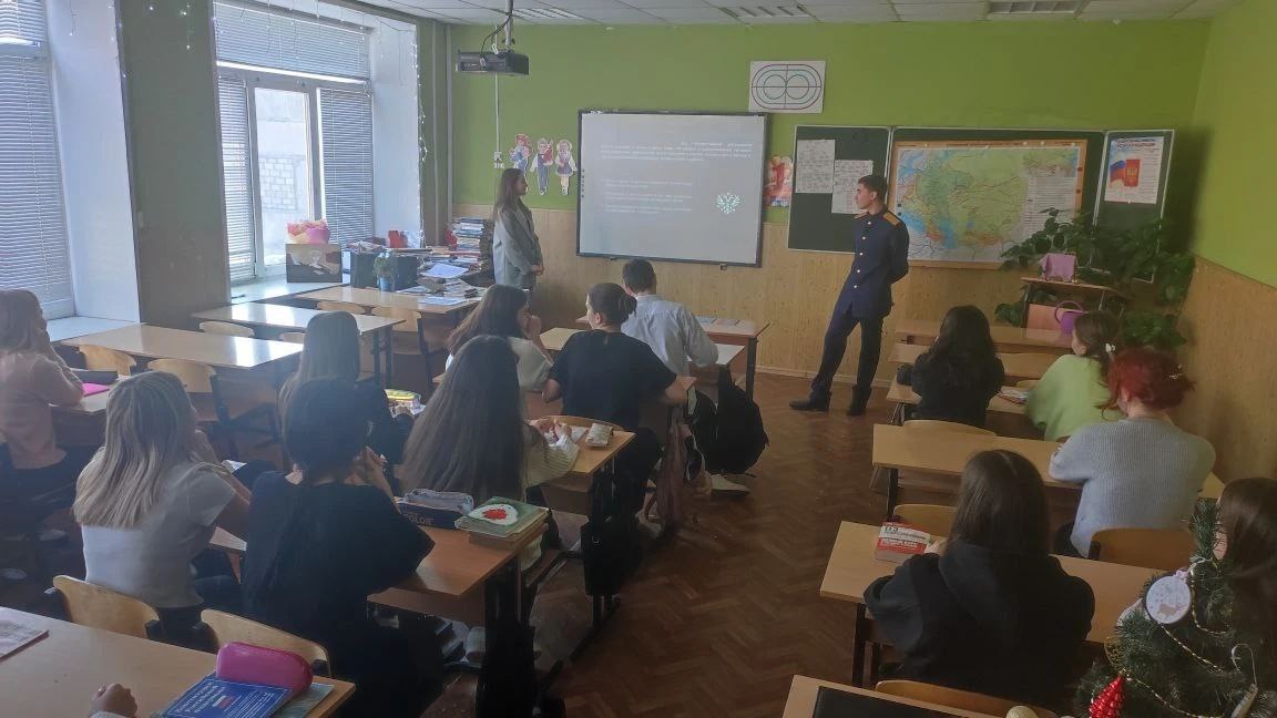 Курсант Луганской академии СК России Вячеслав Оводов и студент Рязанского государственного университета имени С.А. Есенина Татьяна Давыдова рассказали школьникам о структуре и функциях правоохранительных органов России, подробно обсудив функционал СК России, задачи, стоящие перед ведомством и приоритетные направления деятельности.