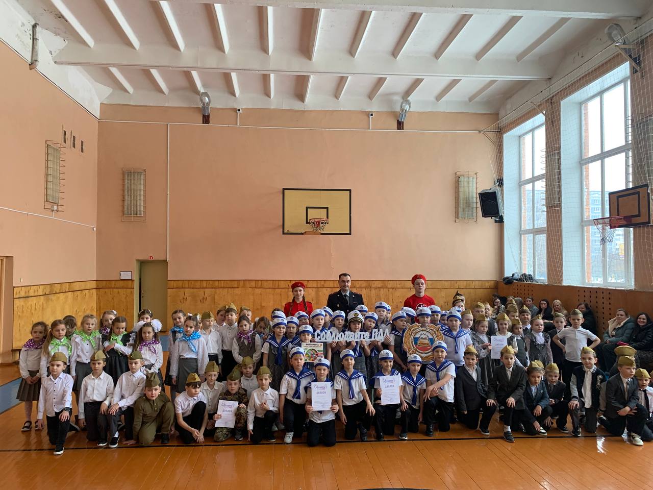 Школьники прошли строем с песней, показали элементы строевых команд, придумали девиз отрядов.