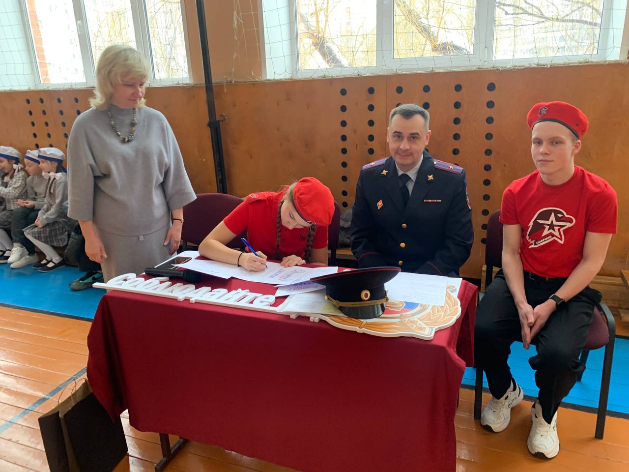 МБОУ «Школа № 72 с Углубленным Изучением Отдельных Учебных Предметов» города Рязани сотрудники Госавтоинспекции приняли участие в смотре строя и песни, который посвящён Дню защитника Отечества.