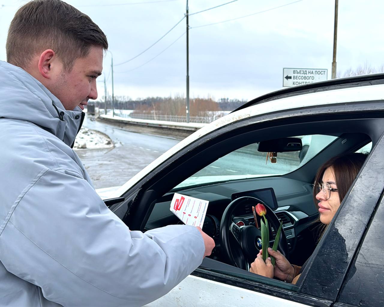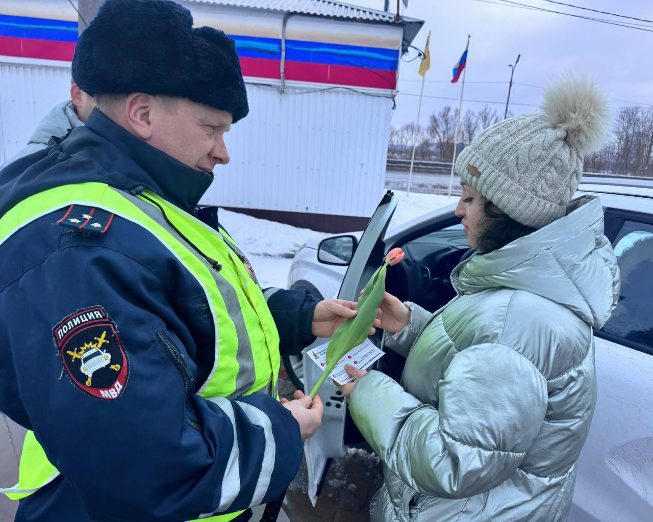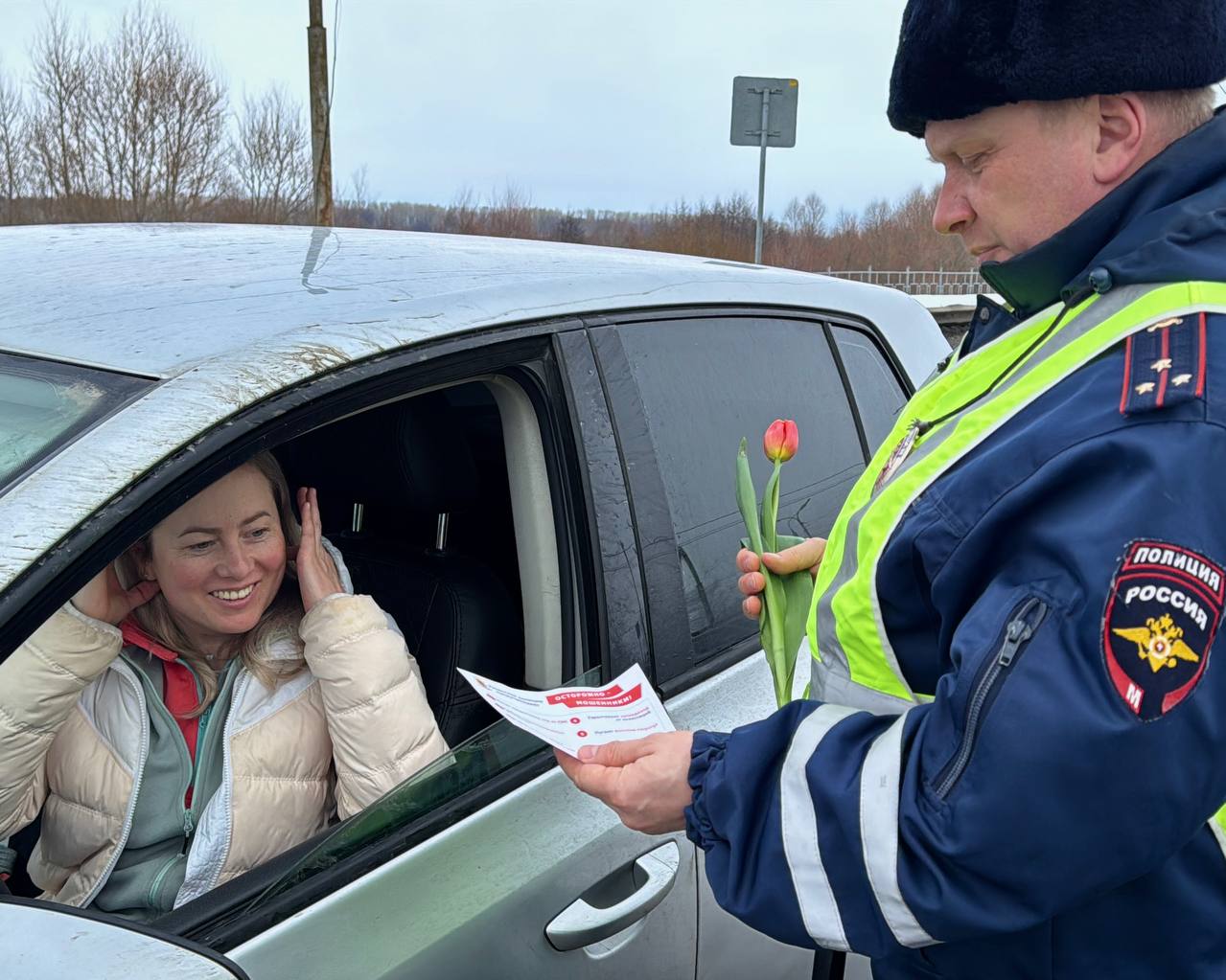 Сегодня сотрудники ОСБ ДПС Госавтоинспекции УМВД России по Рязанской области совместно с представителем Общественного совета при УМВД Юрием Пинигиным поздравили женщин с их наступающим праздником весны.