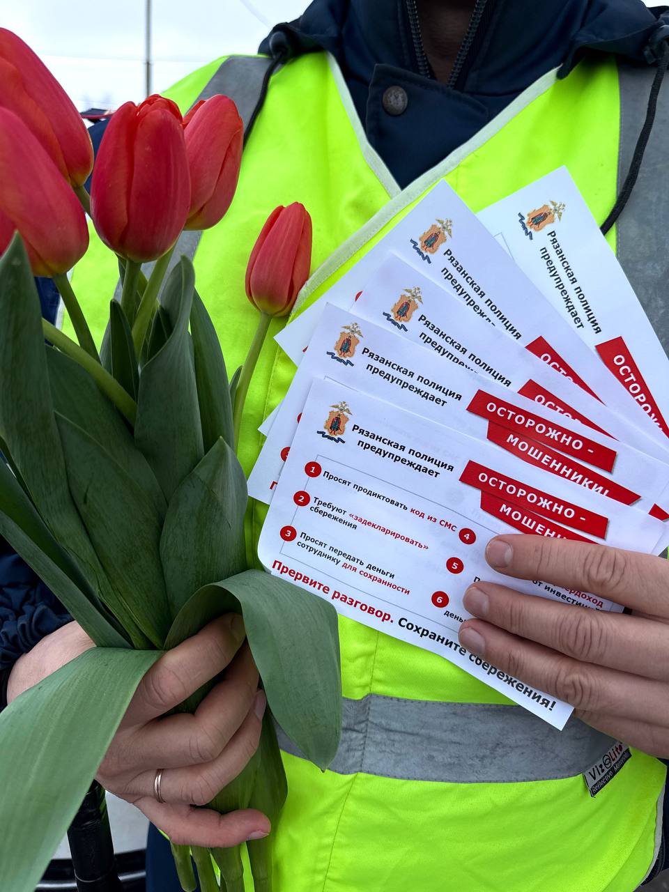 Однако забота о безопасности не ограничивается только правилами дорожного движения. Чтобы праздник не был омрачен неприятностями, полицейские и общественники напомнили женщинам о том, как важно сохранять бдительность. Вместе с цветами были вручены памятки по противодействию мошенничеству.