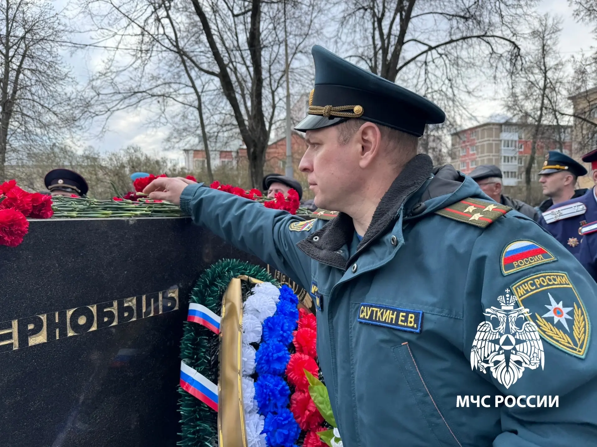 Участники ликвидации рассказывали об эмоциях, пережитых во время катастрофы, и возложили цветы к памятному знаку.