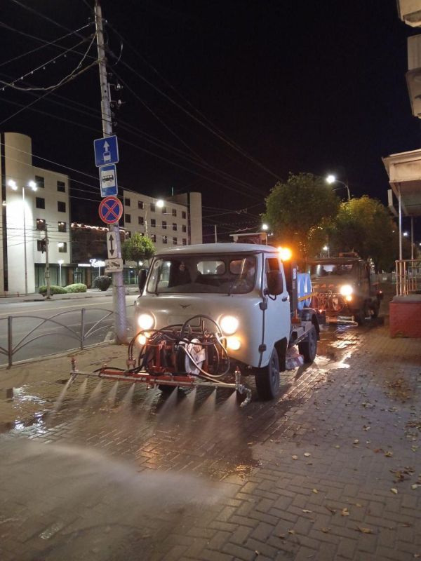 Дороги чистили на участках улиц Тимуровцев, Спортивная, Голенчинское шоссе. Проезжую часть подметали и мыли во всех районах города, работала спецтехника ДБГ. Тротуары и остановки мыли на улицах Новая, площадь Мичурина, Маяковского, Куйбышевское шоссе...