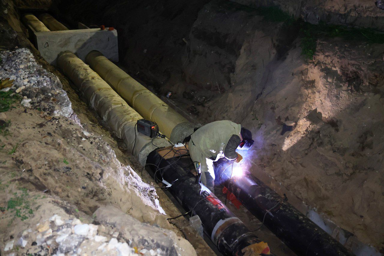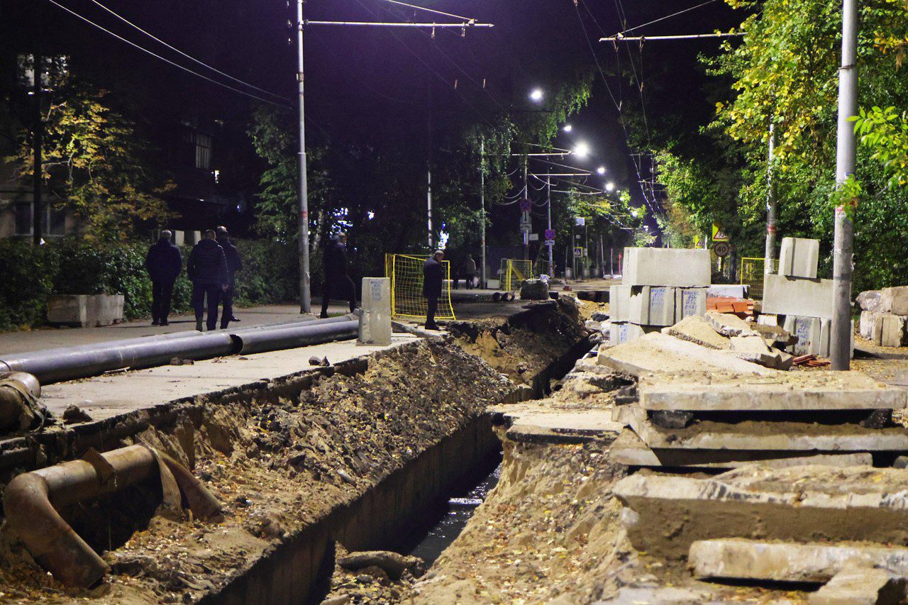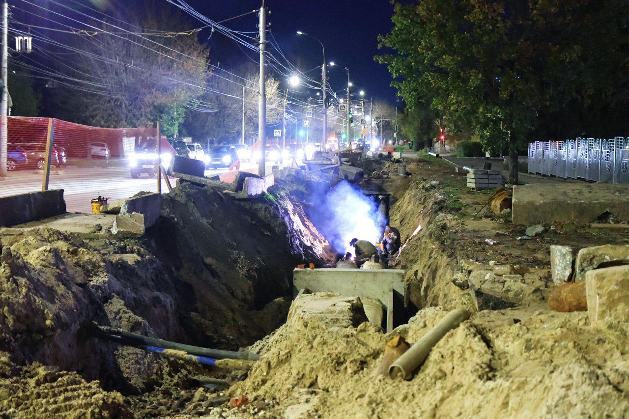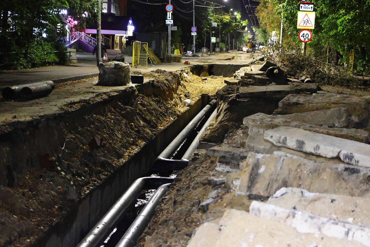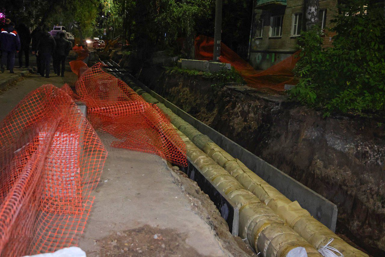 Синхронизировали работы двух подрядных организаций. Ремонт коллектора завершается, подрядчик теплосетей приступает к монтажу оставшегося участка трубопровода. Поручил ускорить темпы работ, чтобы как можно быстрее дать отопление, а уже затем работать над восстановлением благоустройства.