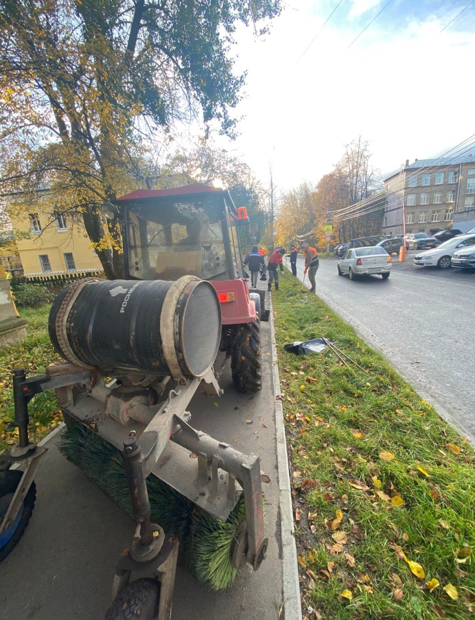 Днем 14 октября в городе продолжается уборка дорог и тротуаров. Комплексные работы по благоустройству территорий проводятся ДБГ на улицах Свободы, Ленина, Толстого, Военных Автомобилистов.