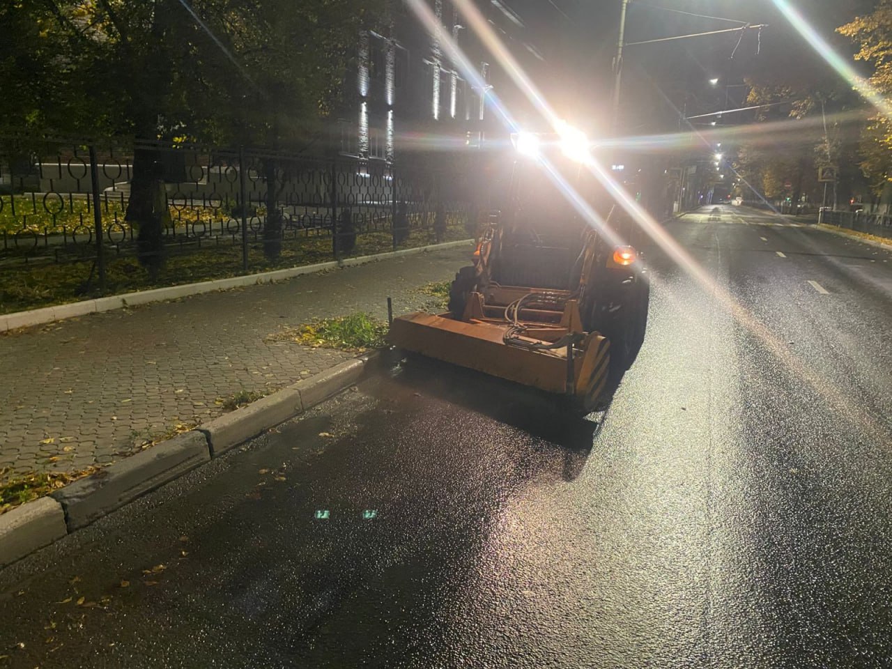 В ночь на 15 октября подметально-уборочная и поливомоечная техника ДБГ работала во всех районах города. Подбор и вывоз грунтовых наносов осуществлялся на участках улиц Есенина (одна сторона), Маяковского, Ленина.