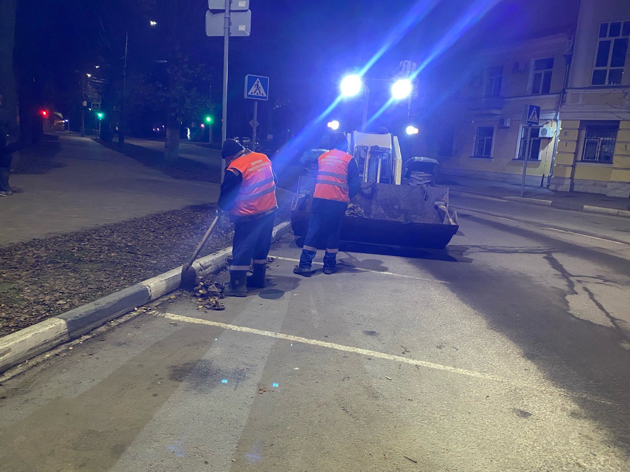 Днем запланированы работы по сбору случайного мусора, очистке урн, уборке дорог и тротуаров. В Рязани продолжается ямочный ремонт, электрики участка наружного освещения обслуживают городские сети.