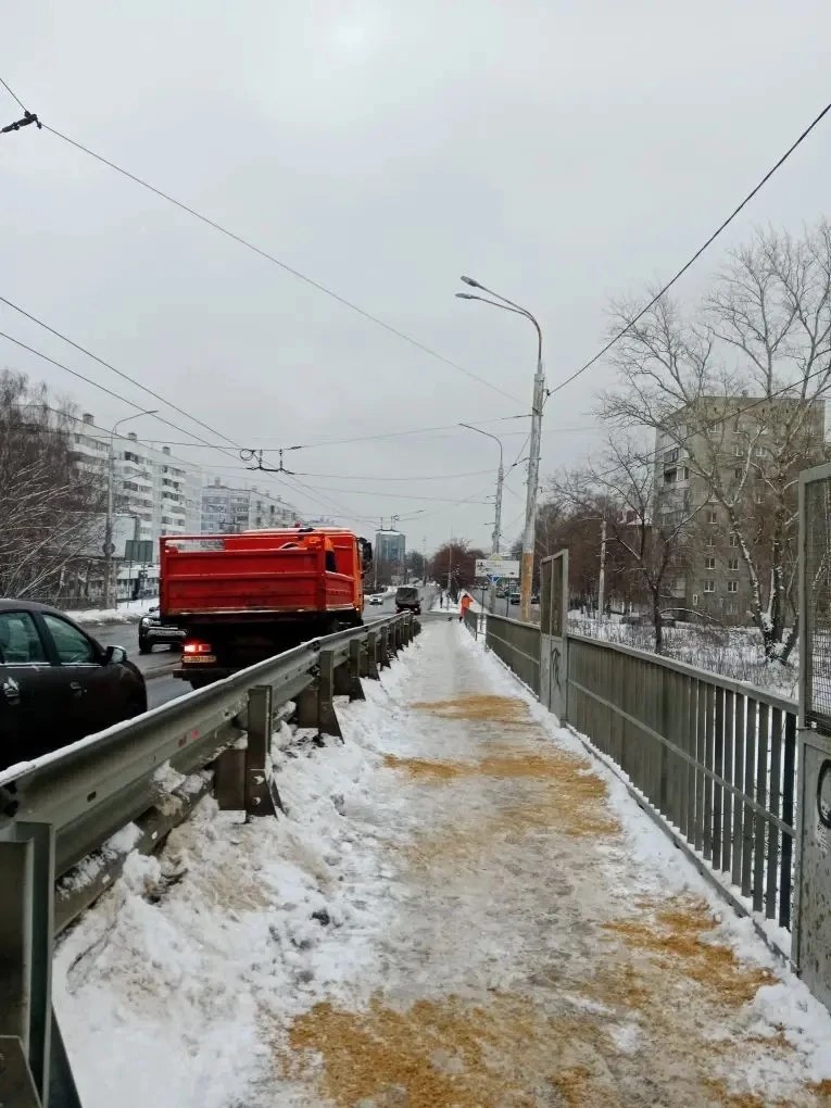 Днем 29 декабря продолжается уборка снега. В городе работают сотрудники и спецтехника ДБГ. «Чистики» и трактора-щетки чистят и обрабатывают тротуары во всех районах города. Сотрудники расчищают остановки общественного транспорта, лестницы, подходы к пешеходным переходам. Пешеходные зоны на мостах и путепроводах обрабатывают от гололеда. Бригады мехуборки расчищают дороги на улицах Горького и Маяковского.