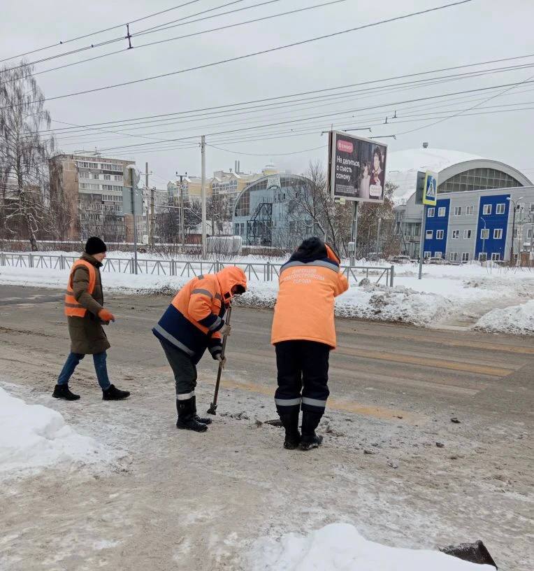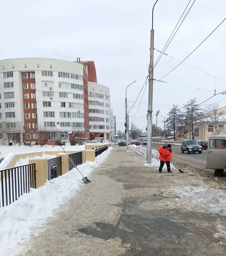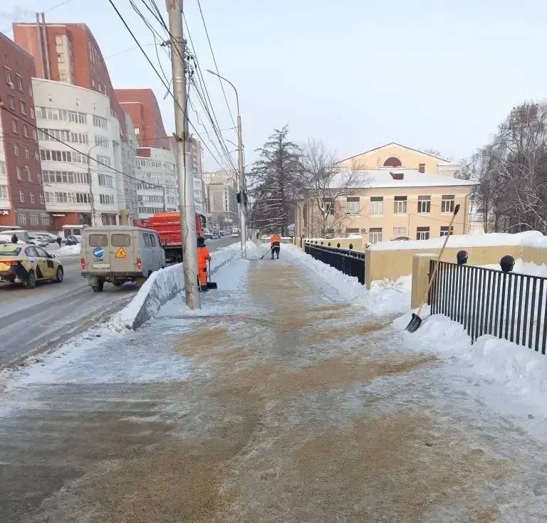 В выходные продолжаем уборку городских территорий. Организовано дежурство КДМ, бригады Дирекции благоустройства очищают пешеходные зоны и остановки общественного транспорта, проводится механизированная обработка тротуаров.