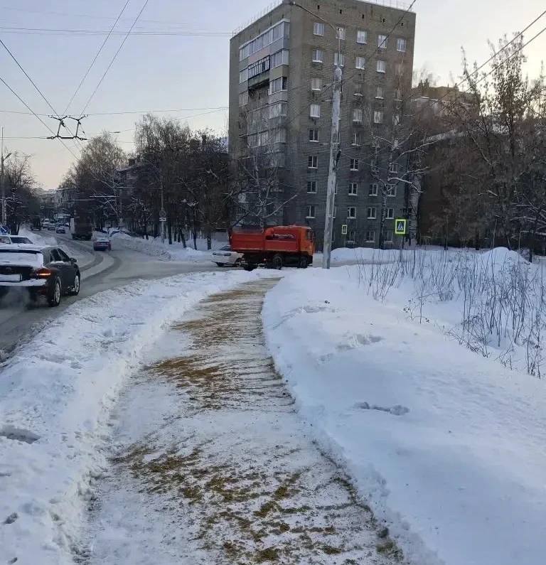 Продолжается уборка городских территорий от снега и противогололедная обработка улиц, мостов, лестниц. Особое внимание уделяется местам с большой проходимостью.