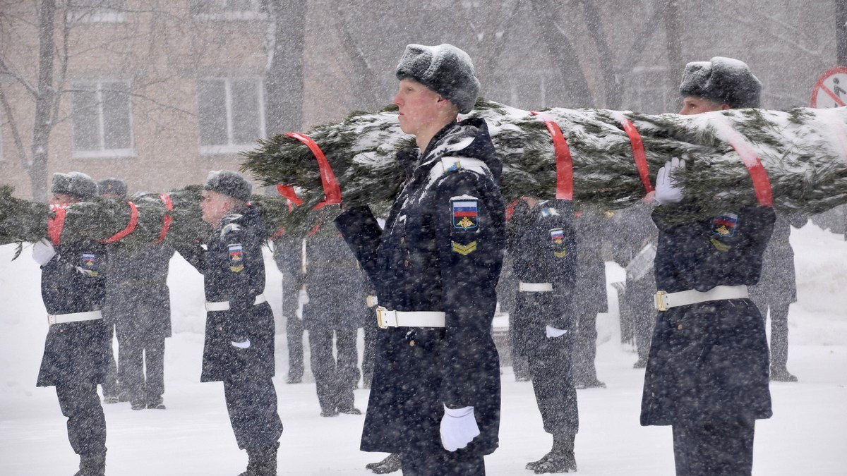 В память о павших объявили минуту молчания. Курсанты десантного училища прошли торжественным маршем.