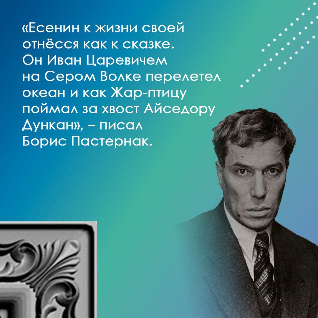 «Есенин к жизни своей отнёсся как к сказке. Он Иван Царевичем на Сером Волке перелетел океан и как Жар-птицу поймал за хвост Айседору Дункан», – писал Борис Пастернак.