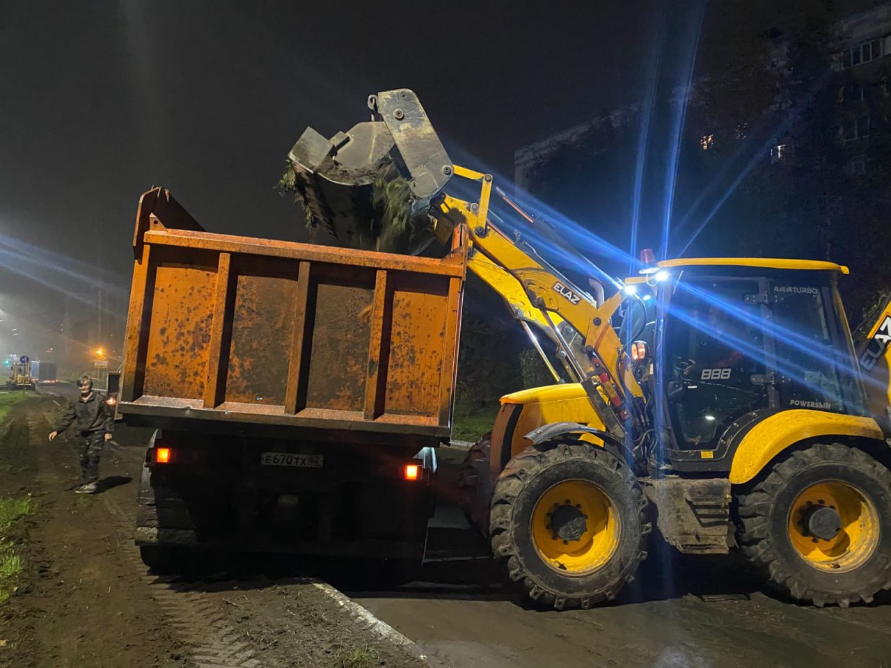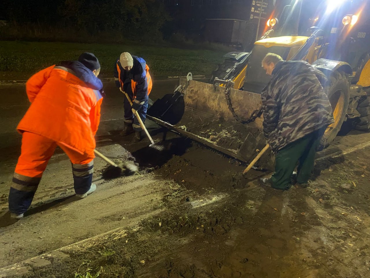 Днем уборка дорог и тротуаров продолжается. Также запланирован ямочный ремонт. Электрики участка наружного освещения обслуживают городские сети.