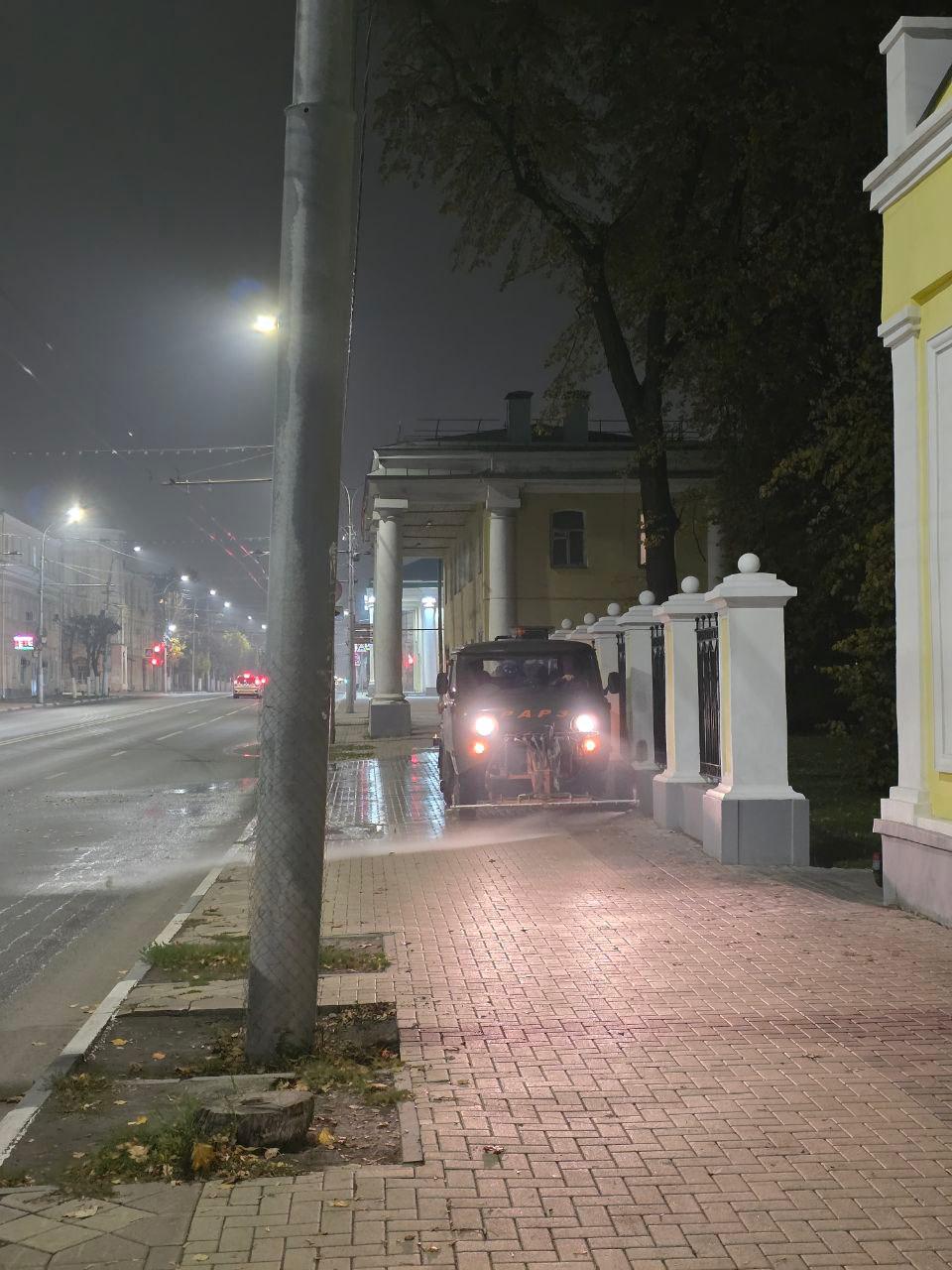В ночь на 9 октября в Рязани мыли и подметали дороги общего пользования. Подбор и вывоз грунтовых наносов осуществлялся на участках улиц Введенская, Вознесенская, площадь Мичурина, Зубковой (срезка грунтовых наносов). Тротуары мыли на улицах Ленина, Первомайский проспект, Чкалова, Кудрявцева, Фирсова, Военных автомобилистов, Михайловское шоссе.