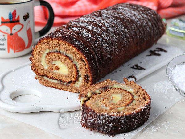 Шоколадный рулет с заварным кремом