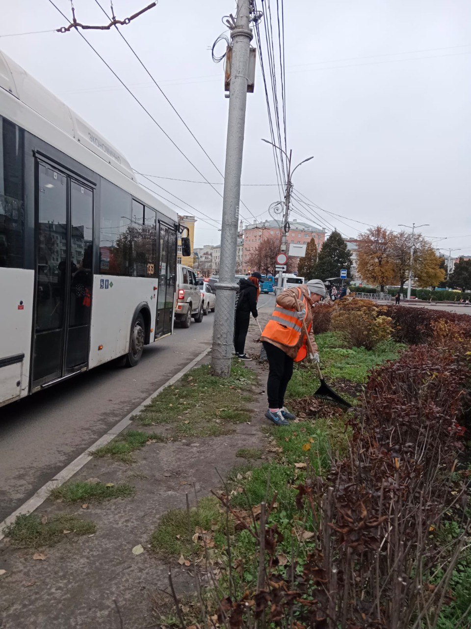 Днем 17 октября в городе продолжаются комплексные работы по уборке и благоустройству территорий.