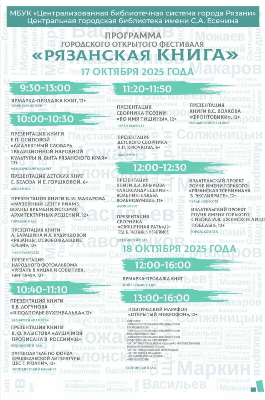В первый день подвели промежуточные итоги. Во второй день фестиваля 18 октября пройдет поэтический марафон «Открытый микрофон». Также свою работу продолжит ярмарка-продажа рязанских книг.