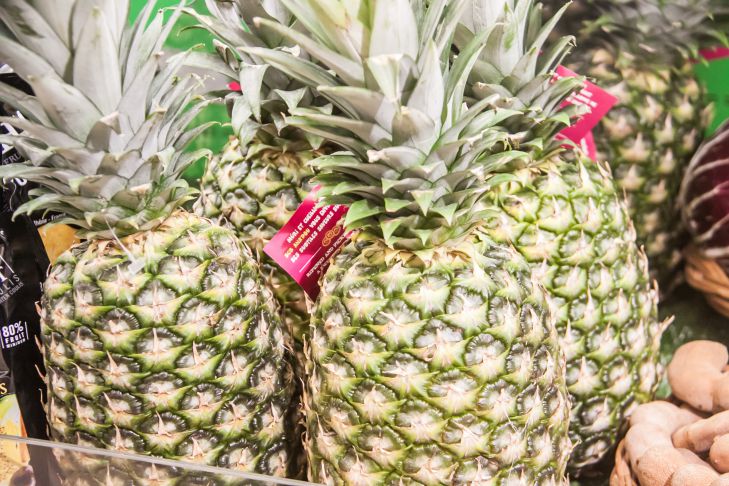 Определяют зрелость ананаса и по внешнему виду кожуры. Она должна быть желтой, поскольку зеленый оттенок говорит о незрелости, а коричневый — о перезрелости продукта.