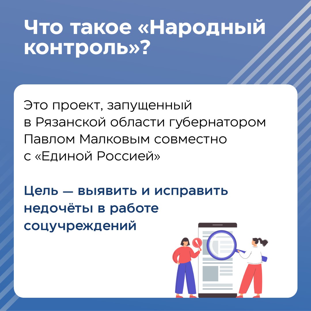 Хотите лично проверить, как работает больница или спортшкола? Теперь у рязанцев есть такая возможность! Губернатор Павел Малков и «Единая Россия» запустили проект «Народный контроль», который открыт для всех активных граждан.