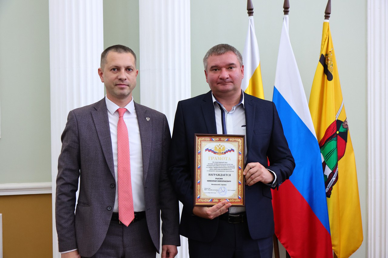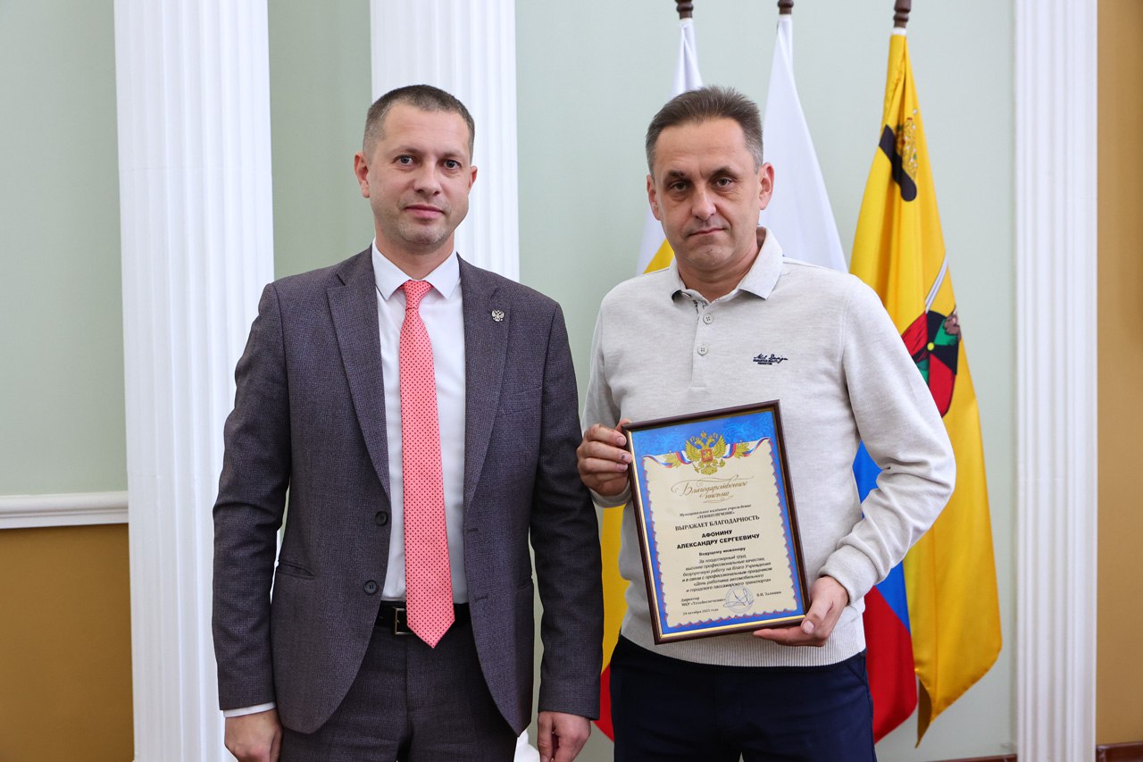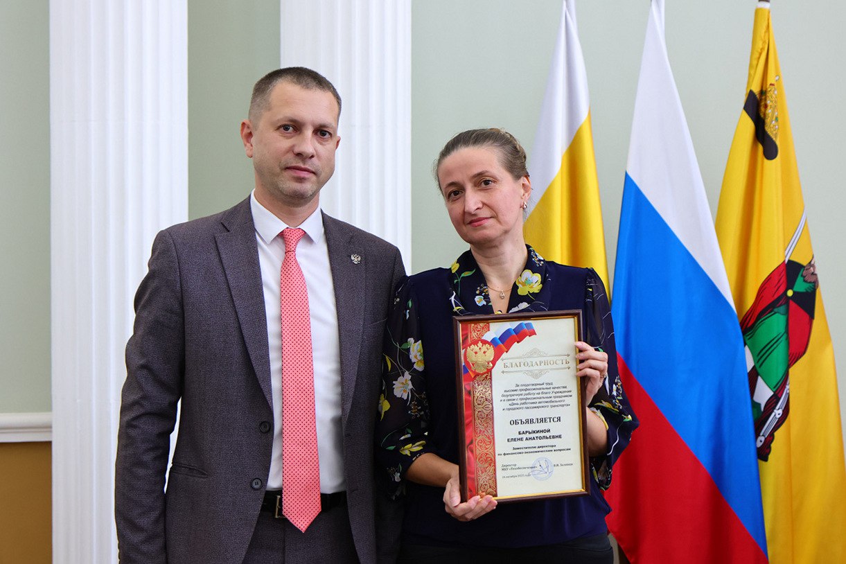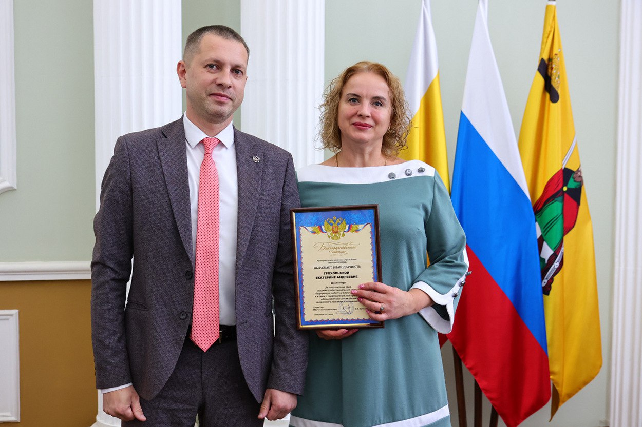 24 октября в администрации города Рязани состоялось мероприятие, посвященное Дню работника автомобильного и городского пассажирского транспорта. С предстоящим праздником сотрудников сферы поздравили заместитель главы администрации, руководитель аппарата Евгения Власова и директор МКУ «Техобеспечение» Вячеслав Заливин.