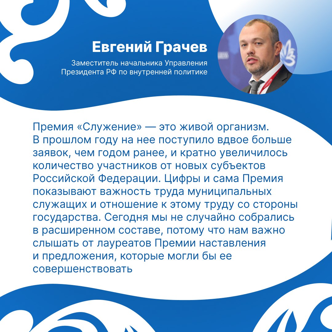 Как отметил заместитель начальника Управления Президента РФ по внутренней политике Евгений Грачев, в прошлом году на Премию «Служение» поступило более 41 тысячи заявок со всей страны — это вдвое больше, чем годом ранее.