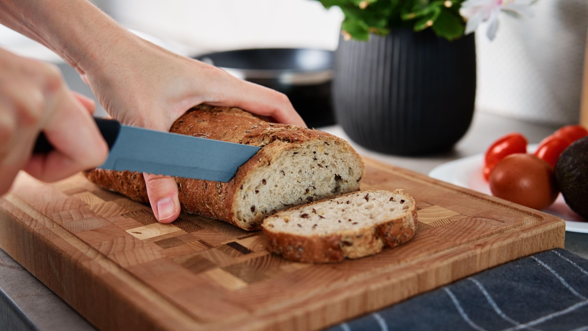 Все, что нужно сделать — это перевернуть хлеб верхушкой вниз. Именно сторона с корочкой капризная и более мягкая. А вот если нарезать батон с другой стороны, то нож легко пройдет, оставив минимум крошек.