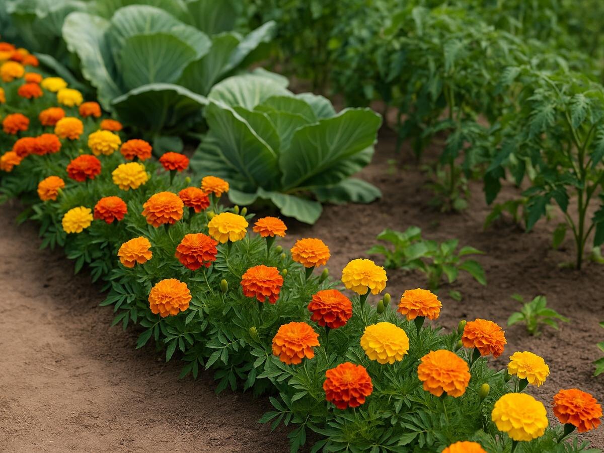 Интересно, что бархатцы выделяют в почву специальные вещества — тиофены. Эти органические соединения снижают активность почвенных паразитов, включая нематод. Таким образом, бархатцы одновременно отгоняют вредителей и улучшают здоровье почвы.