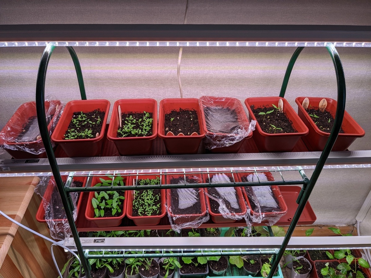 Важным аспектом является высота стеллажей: многие используют недорогие металлические конструкции, где расстояние между полками составляет 30 см. Высота контейнеров — 10 см, что в итоге дает оптимальное расстояние от лампы до посевов в 20 см. На практике это работает, как показывает опыт — цветы, выращенные из семян, радуют глаз в летние месяцы.