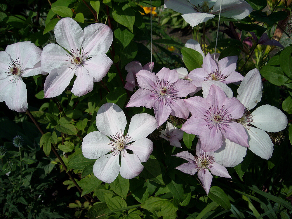 Для поддержки роста клематисам необходимы надёжные опоры — они не смогут развиваться без них. Подходят решётки, перголы или высокие металлические конструкции. Ухаживать за клематисами относительно легко: в первые 2-3 года удобрять их не нужно, весной можно пролить почву известковым молоком для снижения кислотности, а в дальнейшем следует подкармливать азотными и фосфорными удобрениями в зависимости от фазы развития.