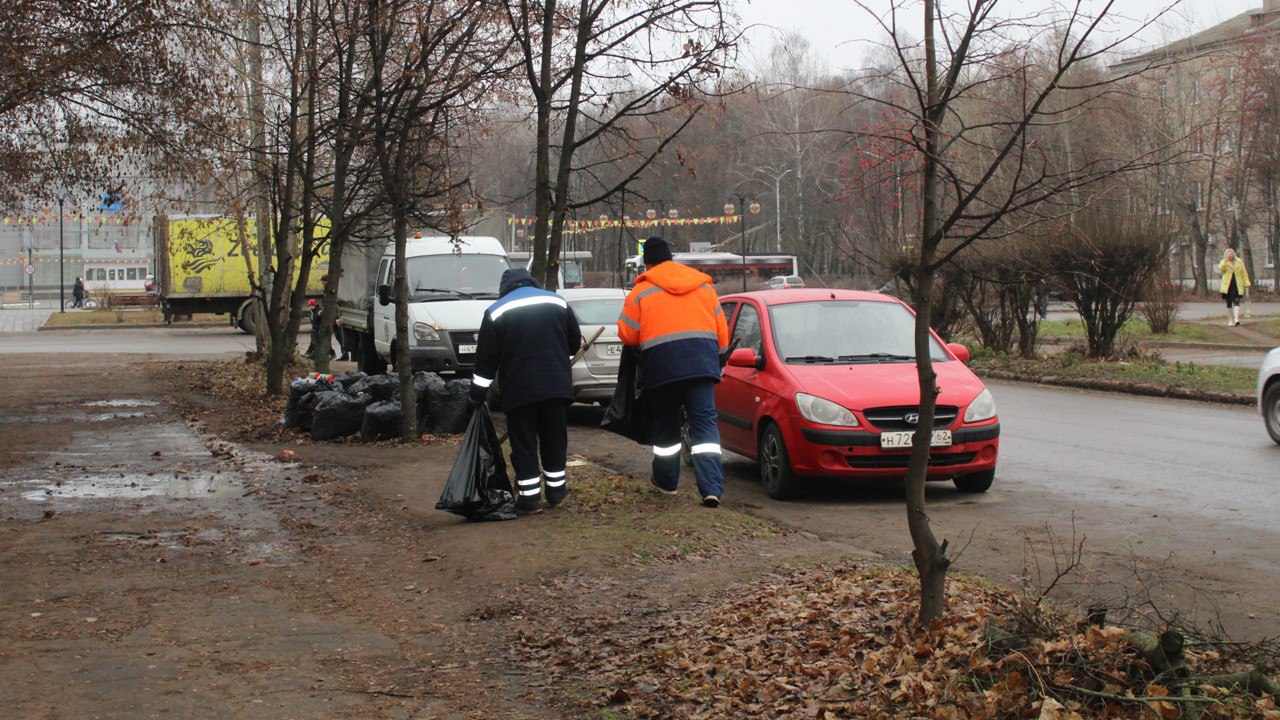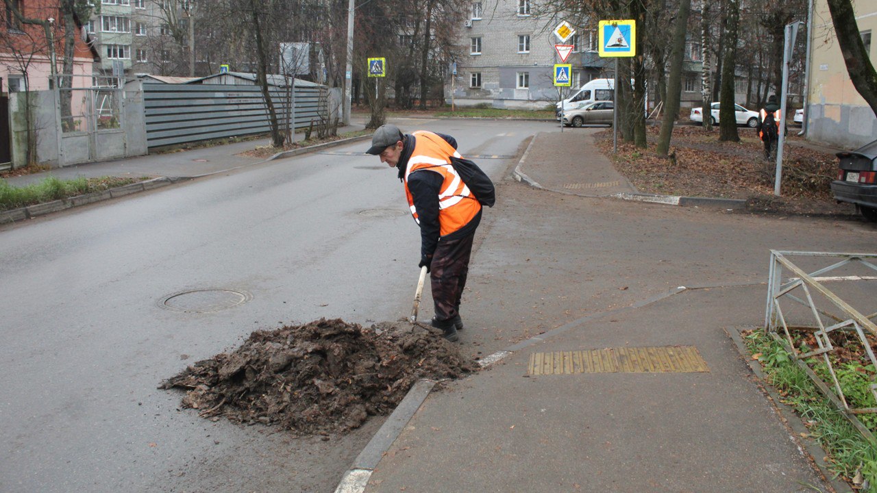 Днем 21 ноября в Рязани продолжаются работы по уборке.