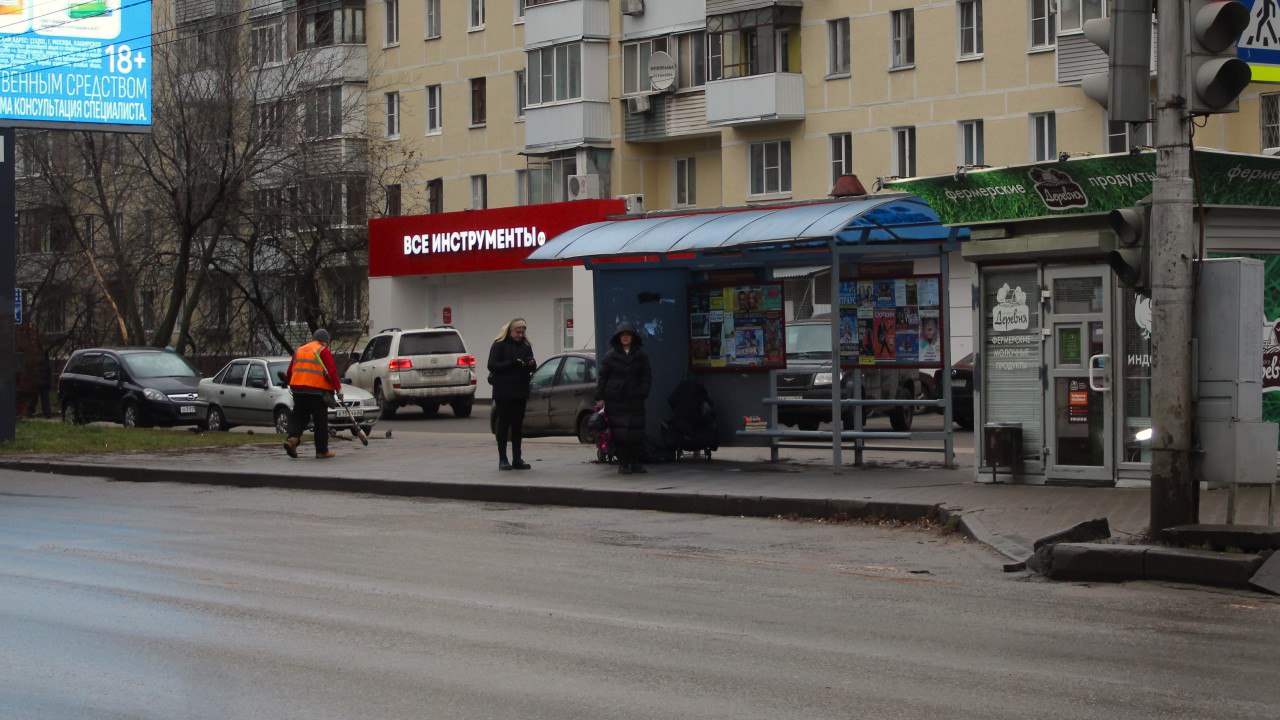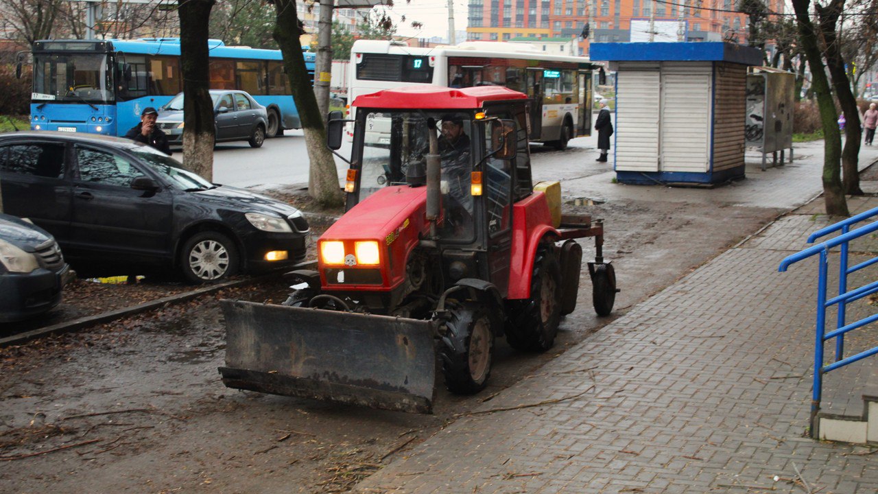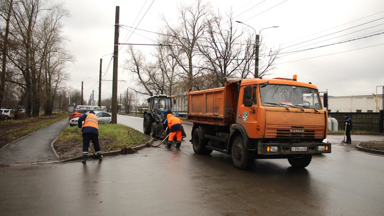 Днем 24 ноября в Рязани работает спецтехника и сотрудники ДБГ. В городе обслуживают остановочные павильоны, собирают мусор и ветки, очищают урны. На дорогах и тротуарах работает подметально-уборочная техника.