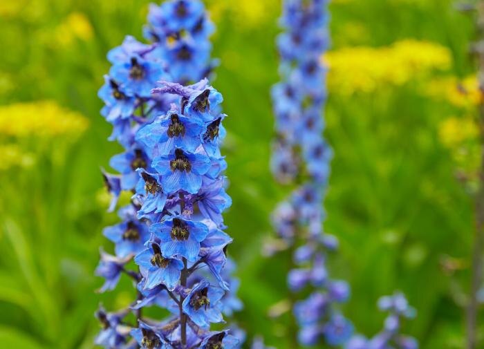 Эти великолепные цветы нуждаются в регулярном уходе. Полив должен быть умеренным — важно избегать как пересыхания, так и застоя влаги в грунте. Чтобы поддержать здоровье растений и их красивое цветение, рекомендуется подкармливать дельфиниумы комплексными удобрениями 2-3 раза за сезон.