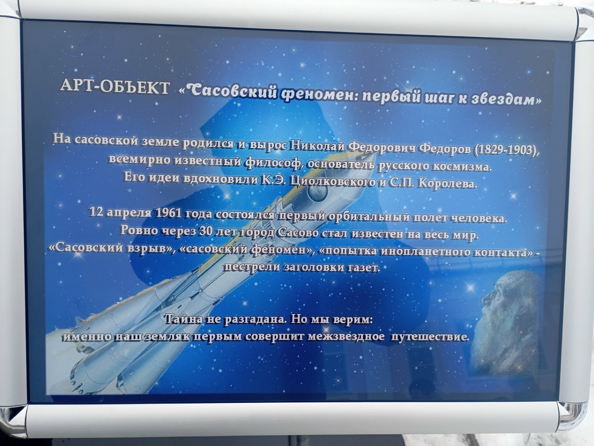 18 декабря в Сасове на территории краеведческого музея открыли новый арт-объект «Сасовский феномен: первый шаг к звездам». К его созданию сотрудников музея подтолкнула загадочная история взрыва, произошедшего 12 апреля 1991 года.
