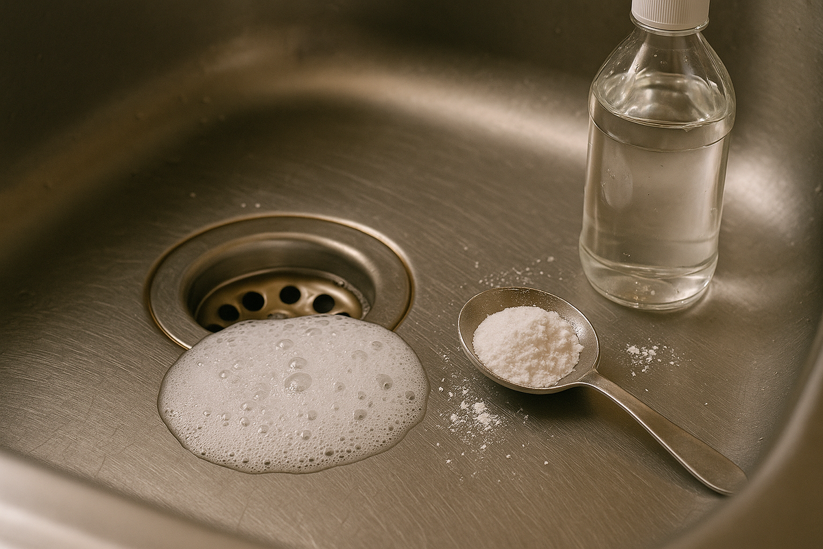 - Сода и уксус: Смешайте половину стакана пищевой соды и столько же уксуса. Засыпьте соду в слив, затем аккуратно влейте уксус. Это обеспечит эффект шипения и реакции, который способствует устранению засоров.