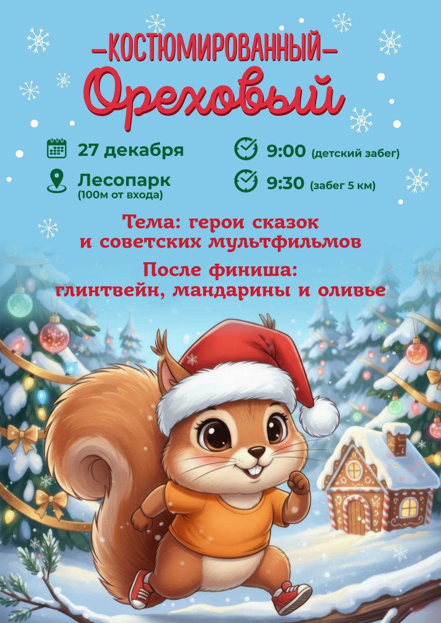 27 декабря в Лесопарке пройдет костюмированный Ореховый забег. Тема соревнования – герои сказок и советских мультфильмов.