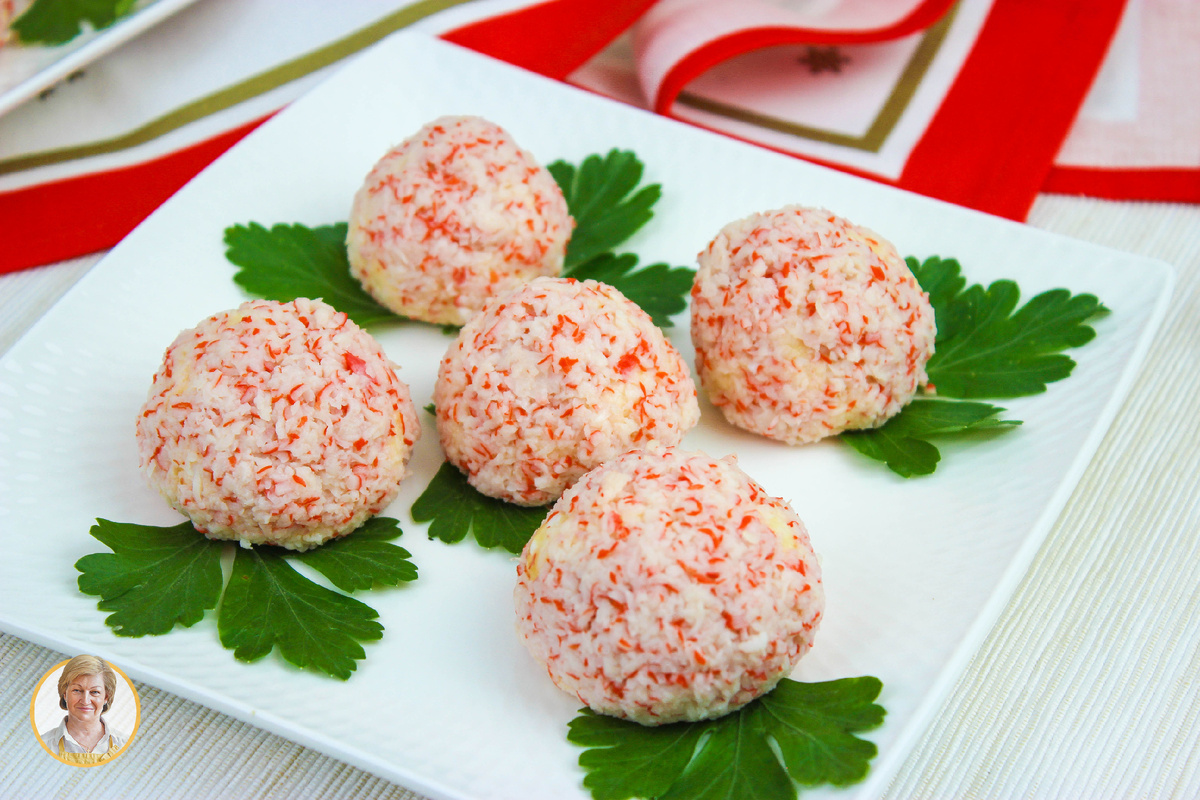 Чтобы завершить процесс, каждый шарик обваляйте в тертых крабовых палочках. Таким образом, закуска приобретет яркий и аппетитный вид. Если вы планируете приготовить их заранее, поместите шарики в контейнер и уберите в холодильник, чтобы они пропитались вкусами и стали еще более вкусными.
