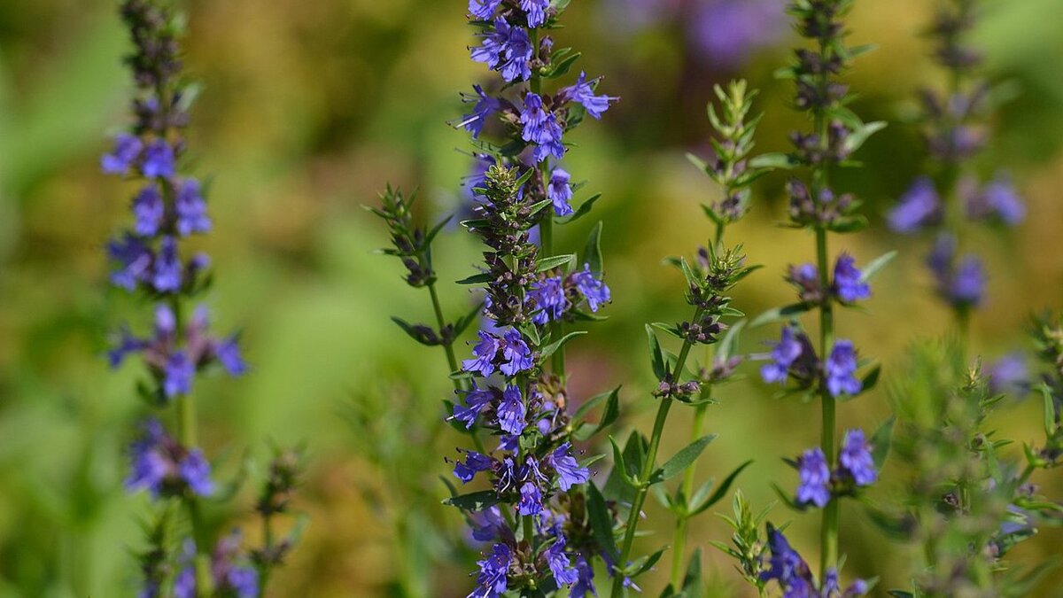 Иссоп, относящийся к семейству губоцветных, растет в Средиземноморье, Азии и Африке. Его узкие листья и мелкие цветки, окрашенные в синий и фиолетовый цвета, привлекают внимание во время цветения, которое происходит в июле и августе. Чтобы вырастить иссоп, нужно выбрать солнечное место с хорошо дренированной почвой.