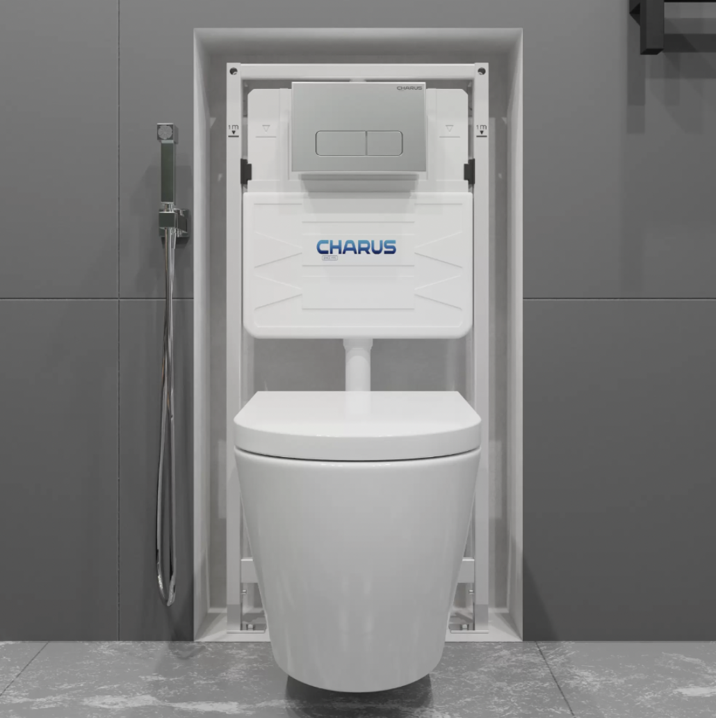 Инсталляция CHARUS обеспечивает легкость интеграции с унитазами различных брендов, а также предлагает более 40 вариантов клавиш для смыва. Это решение отлично справляется с задачей экономии пространства: благодаря своей эргономичной конструкции, инсталляция экономит от 6 до 10 см, выдерживая нагрузку до 400 кг и обеспечивая долговечность на уровне 200 тысяч нажатий клавиши смыва.