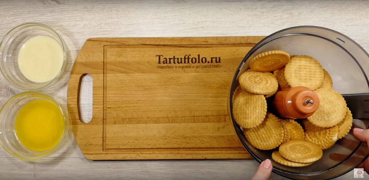 Чтобы создать основу, печенье измельчается в крошку, после чего добавляется сгущенное молоко и растопленное масло. Вмешать это тщательно, а затем влить мягкий творог. Ровный борт формы (диаметром 20 см) оборачивается пленкой, смазанной маслом для избежания прилипания. Затем печеночная основа равномерно распределяется по форме и отправляется в холодильник.