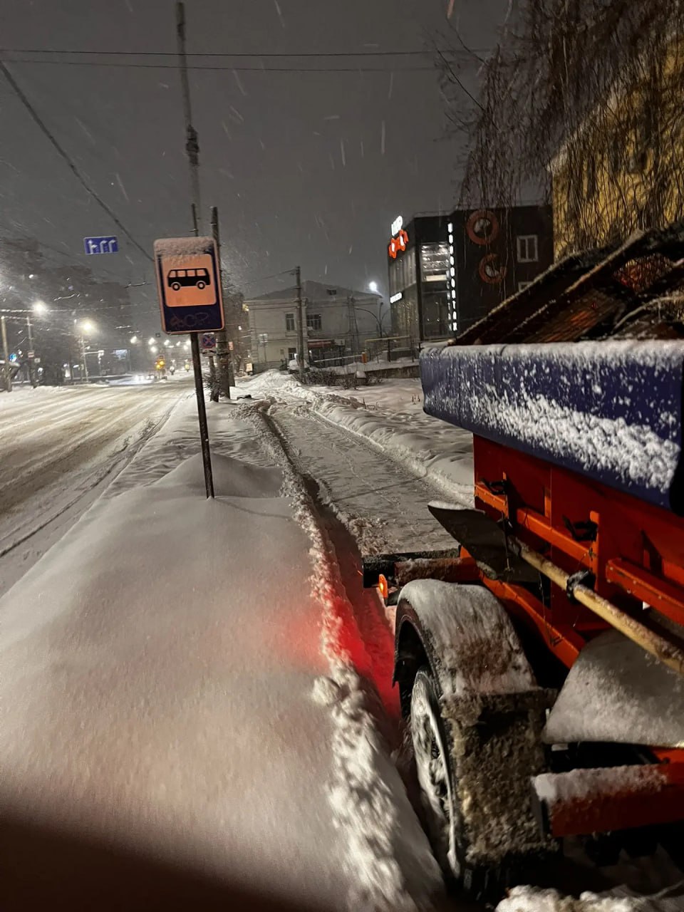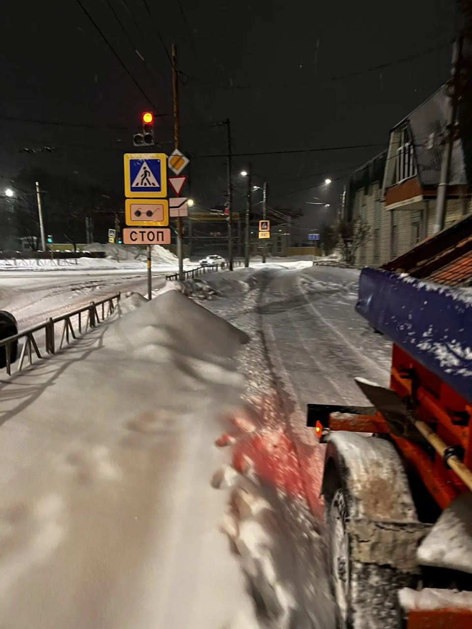 Днем уборка продолжается, на расчистку дорог в составе колонн выехали 12 КДМ, продолжается расчистка тротуаров, пешеходных переходов, лестниц и остановок.