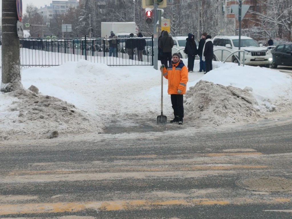 Днем 14 января сотрудники ДБГ чистят пешеходные зоны на мостах и путепроводах, а также остановки и лестницы. Бригады работают во всех районах города. «Чистики» и трактора-щетки подметают тротуары. Продолжается расчистка второстепенных улиц и дорог в частном секторе. На расчистку и обработку дорог вышли 14 КДМ. Снег вывозят с улицы Ленина.