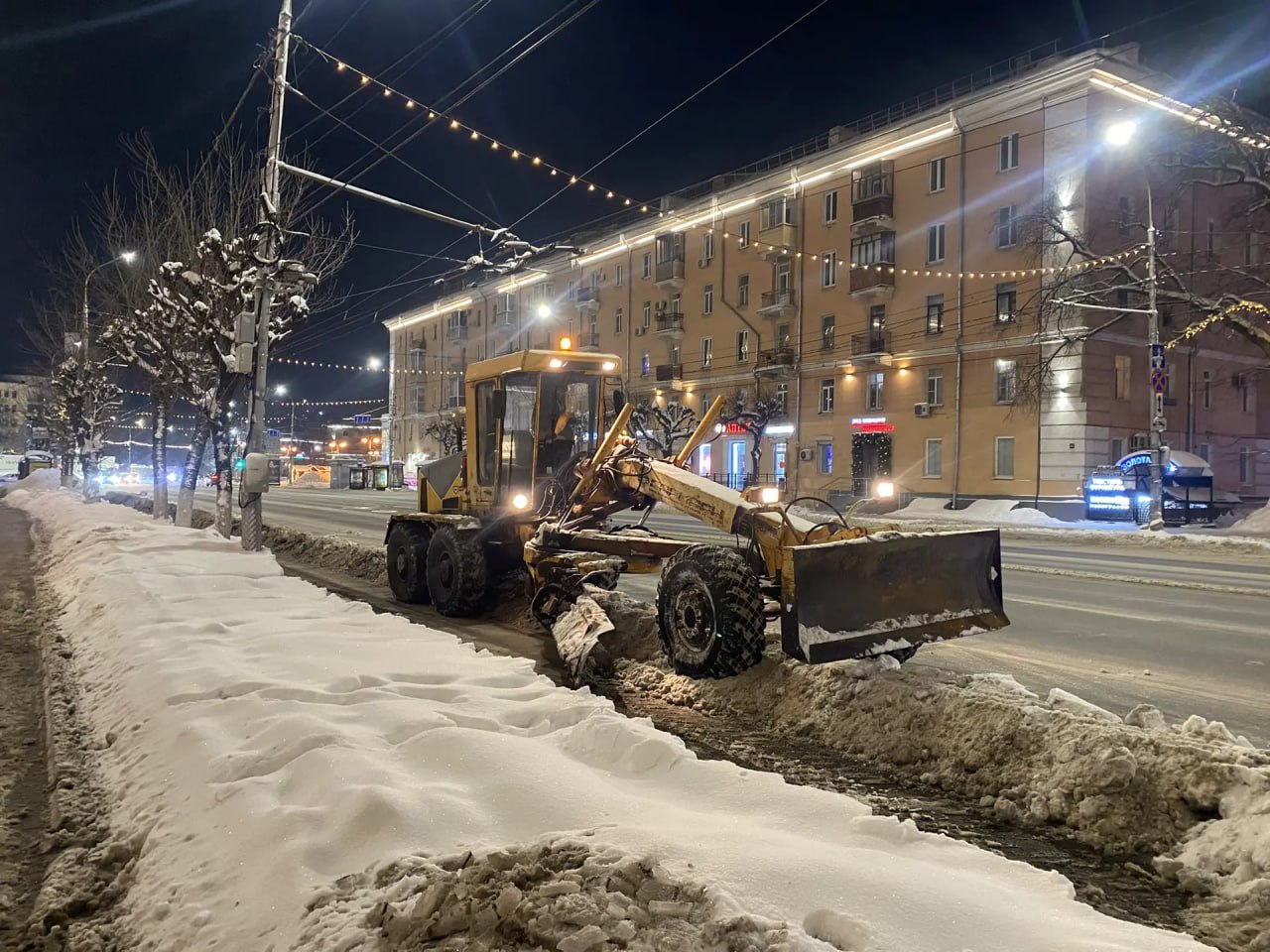 В ночь на 16 января с городских дорог силами ДБГ и подрядных организаций вывезено 4700 куб м. снега. Работали грейдеры, погрузчики, самосвалы, «Чистики» и другая спецтехника – всего 63 единицы. Для обработки проезжей части и пешеходных зон использовано 64 куб. м. песко-соляной смеси и 4 тонны реагента. Бригады мехуборки работали на улице Дзержинского и Первомайском проспекте. Грейдирование выполняли на улицах Трудовая, Разина, Ломоносова, Матросова, Телевизионная, Халтурина Северный и Южный переулок. Снег вывозили с путепроводов на Есенина и Куйбышевском шоссе, чистили остановки по маршруту движения автобуса №6. Тротуары подметали и обрабатывали на улицах Куйбышевское шоссе, Новоселов, проезд Яблочкова, Васильевская, Тимакова, Тимуровцев, Советской армии, Циолковского, Дзержинского и других. На улицах Черновицкая, Московская, Интернациональная, Промышленная, Первомайский проспект проводили ямочный ремонт, объем выполненных работ – 58 кв. м.